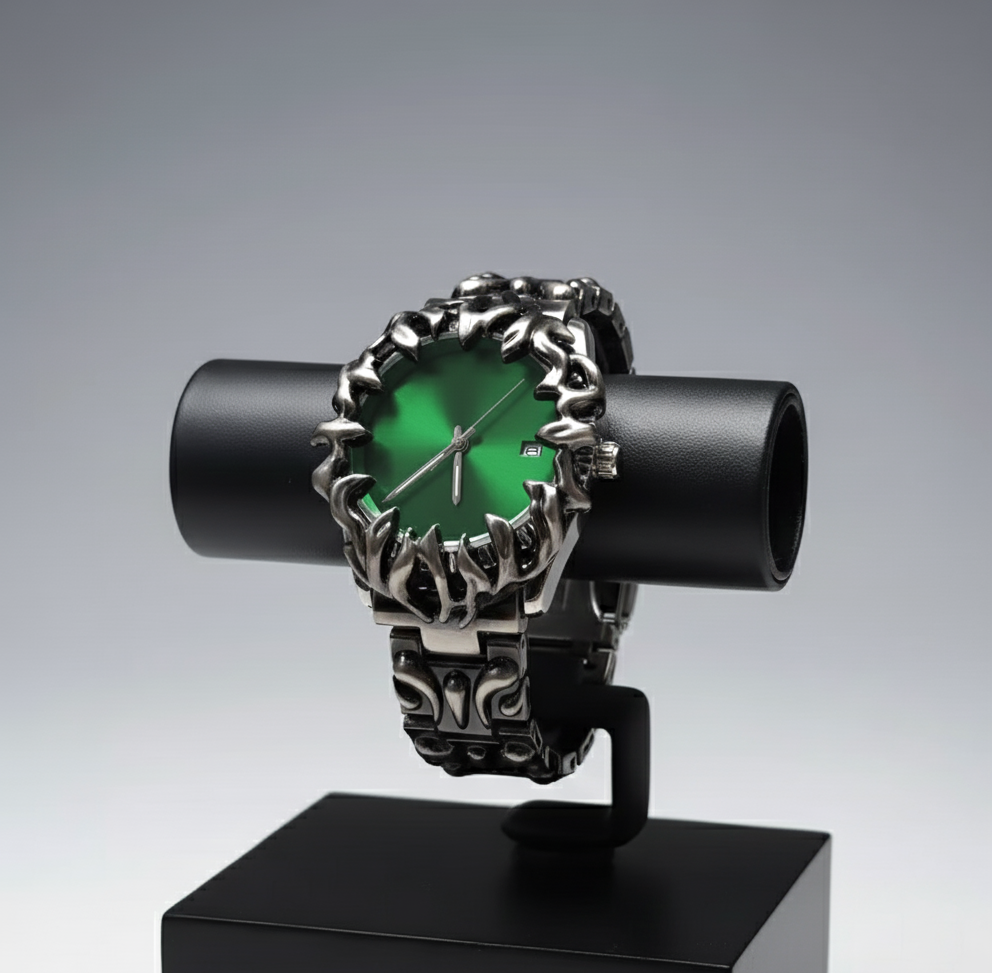 Time doesn't wait, and neither should your aesthetic. Ditch the minimalist trash and strap into the BLOOD OATH—a piece of wrist armour ripped straight from a forgotten dimension. This isn't just a watch; it's a statement of digital rebellion and dark, unapologetic glamour.